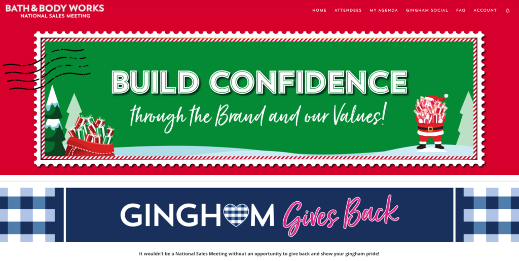 Bath & Body Works brought nearly 350 managers together for a virtual national sales meeting focused on unveiling new holiday products. We traveled to their corporate office to build a mobile broadcast studio and deliver the experience on location. A virtual gallery of attendees appeared on multiple studio screens, allowing presenters to engage directly with their audience. The program also featured a 360-degree virtual store, enabling attendees to explore products interactively and deepen understanding through immersive education.