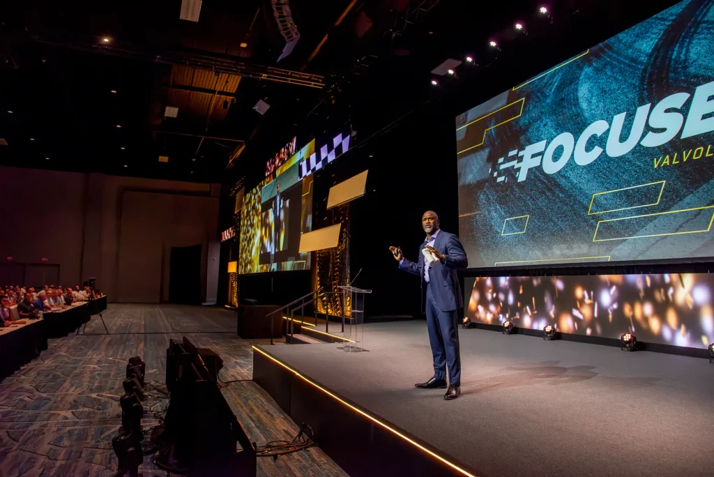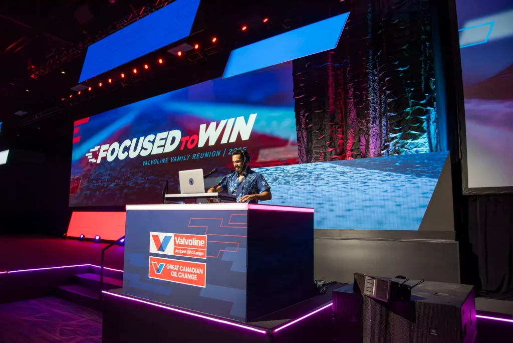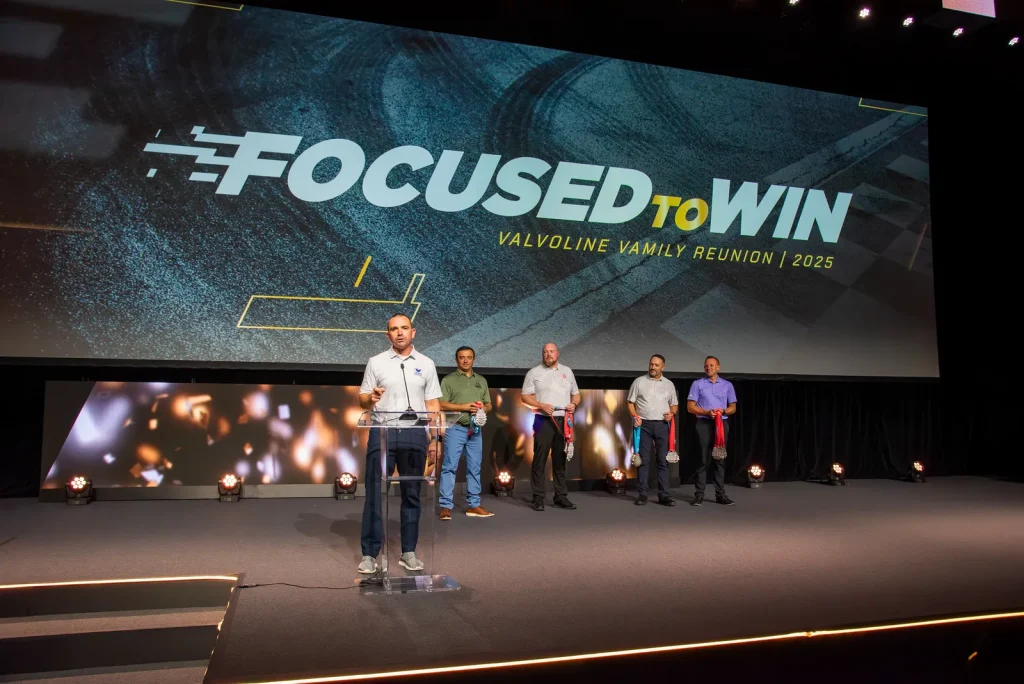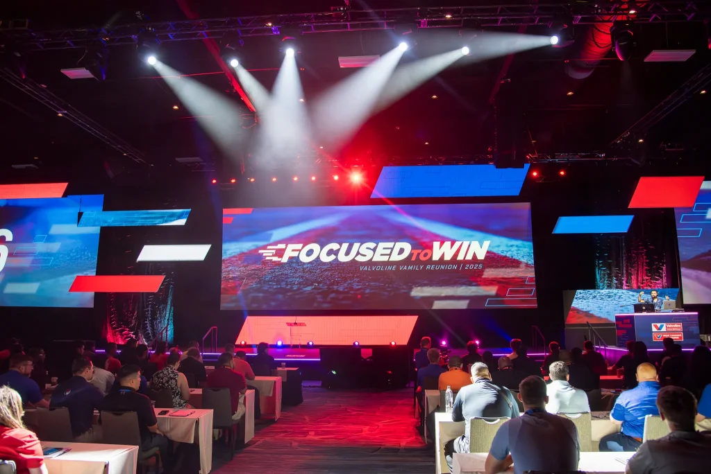 Race cars. Motorcycles. Drones. This one had it all. Our friends at Valvoline always provide us the cherised opportunity to produce fun and ambitious content for their annual gathering of franchise operators. In 2025, the pitch meeting started with “can you rent out a race track?” — why yes, you can! This cinematic open involved multiple departments –including helmet decals from our scenic print team, props and supplies from the event inventory (fog machine, ftw!), and of course pitch-to-post expertise from our video production gurus. A thrill ride for client, cast and crew — and an opening video that set the tone for a memorable event experience.